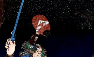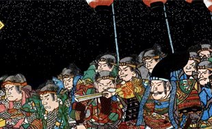 | Sato no Tadanobu was one of the four loyal retainers of the legendary hero Yoshitsune. When his hiding place was betrayed by a former mistress, he defended himself with a Go board against a police force of more than 200 men. | ||