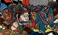 | Sato no Tadanobu was one of the four loyal retainers of the legendary hero Yoshitsune. When his hiding place was betrayed by a former mistress, he defended himself with a Go board against a police force of more than 200 men. | ||