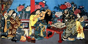 This again shows a deep insight into go as a game of skill, at a time when other cultures were barely above the level of games of chance. What is more, since then go has had almost 2,000 years to flourish further. In that time it has been woven into the fabric of Asia's history at every level, enjoyed by emperors, immortals, scholars and common men. It is sad that its history is so little known in the west. |