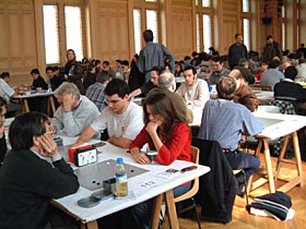 | This tournament which is held at the same place as last year in the 13th district in Paris at the district hall facing Place d'Italy was filled with people and Go boards so that they had to set up an extra room. |