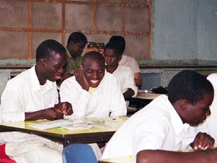 | School in Malawi consists of grade 1 to grade 8 and 3 years in junior high school followed by university. Regarding primary school, children at any age can go (there is no family registration so there is no way to find out their age) but to enter junior high school there is an exam so it is a narrow gate. Because Malawi was under the control of Great Britain till 1964, the official language is Chewa (local language) and English. English newspapers are common and TV is broadcast in both languages. By the idea of the teacher who is in charge, over 20 students who are good at Mathematics took part in the Go class. All of them were quick learners and they immediately enjoyed the new game. Above all, the teacher was deeply impressed and was enthusiastic and told me ` I will use Go as a tool for Mathematics class!' It seems that she felt that there is something in common between Mathematics and Go. |