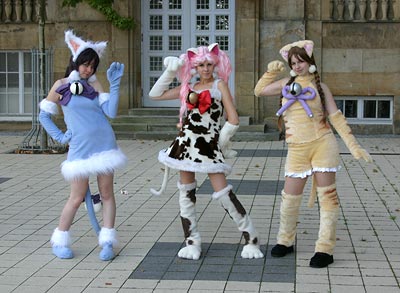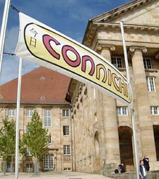 | At this convention, called `Connichi' which opens at 10am and closes at 2am, there are events with the keyword of animation. The average age of the participants is junior and high school students and most of them were in cosplay (wearing costumes) and 80% of them were girls. There were cosplay competition, performances of popular animation singers and animation movies were shown from morning till late at night and at the animation shops which were gathered from all over Germany and outside Germany, it was very crowded with people buying as if they don't have a chance to buy and everywhere was lively with young people. |