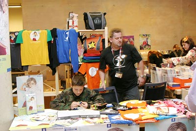 | As one of the colorful events which are held every day, a Go booth was set up every time by the cooperation of the German Go Association. The person in charge of the booth is Christoph, the top German Go player, who was a representative of the World Amateur Go Championship, and is a computer engineer. He is well known and popular among animation fans now and not only girls who play Go but also many kinds of people gather around him. |