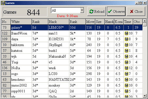 IGS-Pandanet has Rooms and Channels. When you first enter IGS Pandanet, you are in the main room by default. Most of the players will be in the main room. There are many rooms, but the Rooms window only lists a few. To see all the rooms, use the Telnet window above and enter the word room. To see this manual click on how to. The Friends window can be used to instantly check on