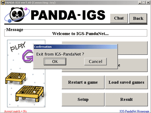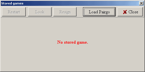 If you have saved games, you can review them by clicking on the Load saved games button. This will bring up the Games directory on your harddrive, and you may select a game to review by highlighting it and clicking the Load button. The board that comes up will have an "offline" reminder in the lower left corner of the window.