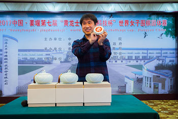 今年、日本囲碁界の王者である井山裕太九段(27歳)がやっとスケジュールの苦境から脱出し、初めて賀歳杯に参加した。中国の柯潔九段(19歳)と韓国の朴廷桓九段(24歳)もそれぞれの国のランキング1位である。2017年は旧暦の酉年なので、主催側が抽選を「金卵を叩く」という趣向で行った。棋士たちが槌で叩くと、金卵がパッと割れた。