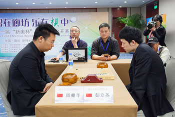 10月22日、24日、第14回中国倡棋杯世界プロ囲碁選手権戦と第7回中国アマチュア大会陳毅杯がともに上海応氏ビルで行われた。対戦をする四名の棋士は数多くの敵を倒して突破してきた。江維傑九段(26歳)は6年前すでに世界チャンピオンになった。また、檀啸九段(24歳)は今年の春蘭杯世界囲碁選手権戦の優勝者である。王琛7段(25歳)と白宝祥7段(24歳)はともに「アマチュア四天王」と呼ばれ、陳毅杯でも優勝したことがある。