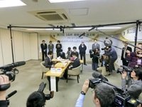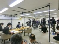 報道陣に囲まれる両対局者