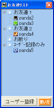 | 「お友達2に登録」 | … | お友達がパンダネットに接続したときのみ画面右下に通知メッセージが表示されます。 |