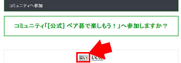 | [ 4 ] 確認画面が表示されますので“参加する”をクリックします。これでコミュニティに参加でき、掲示板など、色々な機能をお使いいただけます。 |
