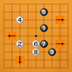 勝負は、それぞれの作った陣地が多い方が勝ちですから、少しでもたくさん陣地にしましょう。もちろん、それにはコツがあって、打ち始めのころから勝負が付くまで、常に自分の陣地を増やすか、相手の地を減らすために工夫を凝らします。