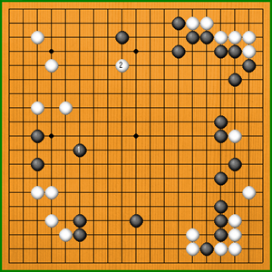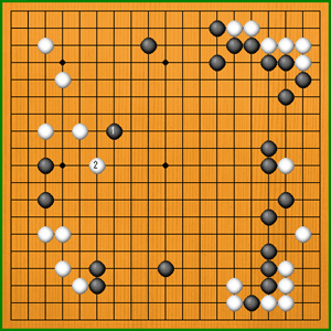 白2と打たれると、なかなか中央がまとまりにくくなってしまいます。 |
