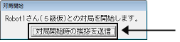 対局が始まると、左図の画面が表示されます。 [対局開始時の挨拶を送信]ボタンをクリックすると対局相手に挨拶が送信されます。 |