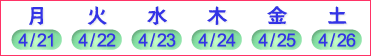 | 4月21日(月)から26日(土)の間に1回5名ずつ各2回 |