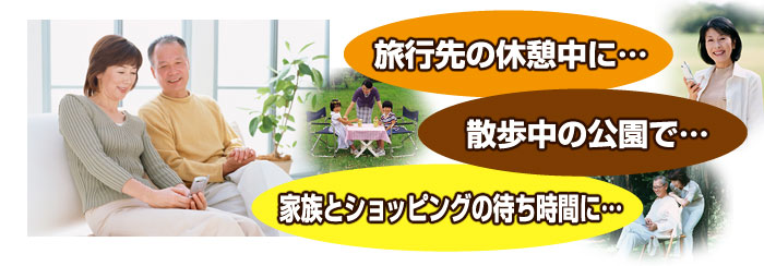 | 昨日の晩にPC上で対局した棋譜を、翌朝の通勤時に、または昼休みに携帯上で再現して「棋力アップ」や「反省」など、ちょっとした空き時間でもお楽しみいただけます。 |