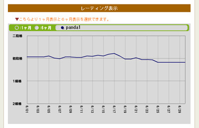 過去6ヶ月/1ヶ月間のあなたの段級位(レーティング)の推移をグラフで確認できます。