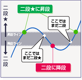 昇段・昇級と降段・降級のラインが異なる