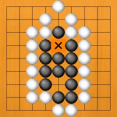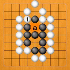 45図、白1と打てば、aの地点が「欠け眼」になります。