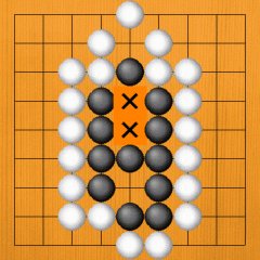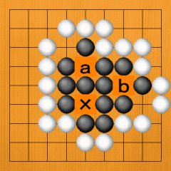 41図のように、×印の空点が二つあっても、aの地点が「欠け眼」では同じことです。いずれaの点はふさがれてしまいますから、この黒は「二眼」できません。
