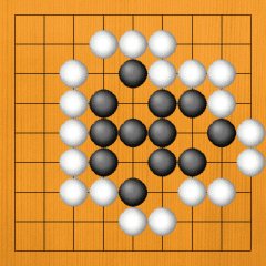 39図、黒△の石は上と左右が白に囲まれていますから、白1と打たれれば取られます。