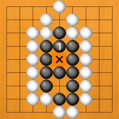 54図、白1と打てば、ここが「欠け眼」になるのです。