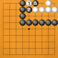 82図のように、白1のあと、続いて白2と連打する必要があります。しかし、碁は一手ずつ打つゲームですから、そうはいきません。