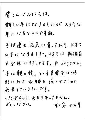 ご家族の楽しい様子と知念かおり女流棋聖の近況をご覧いただけます。