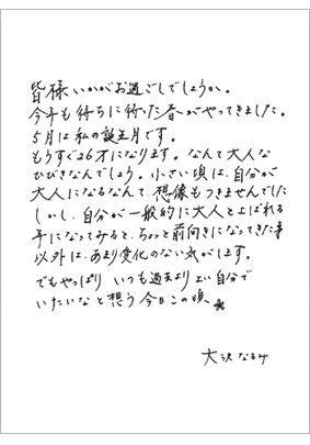 もうすぐ26歳になるという大澤奈留美二段の近況写真や直筆お手紙をご覧いただけます。