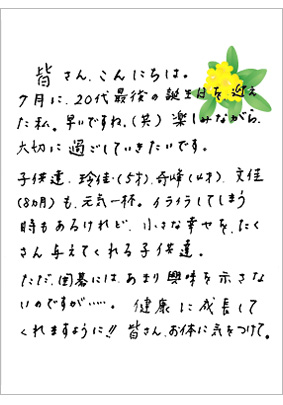 先月20代最後のお誕生日を迎えられた知念かおり女流棋聖の近況写真や直筆お手紙をご覧いただけます。