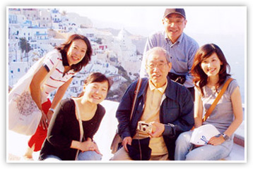 サントリーニ島にて。一番右は一緒に行った