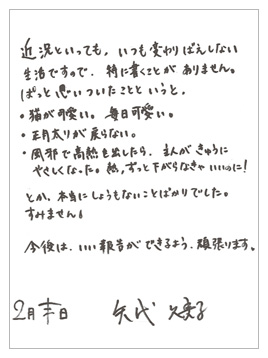 文化庁の囲碁教室で子供たちに教えてきたという矢代久美子五段の近況写真と直筆のお手紙をご覧になれます。