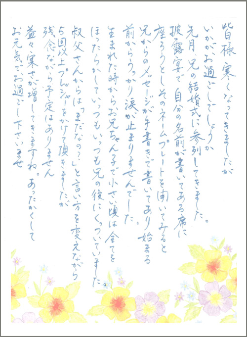 先月お兄さんの結婚式にご出席されたという大澤奈留美四段の近況写真と直筆のお手紙をご覧になれます。