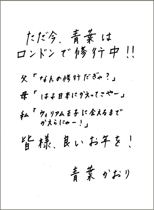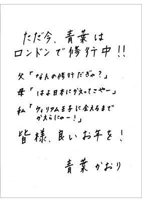 ロンドンで修業中の青葉かおり四段の近況写真と直筆のお手紙がご覧になれます。