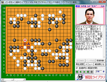 白の大ゲイマに対しては黒Aと三々に入る実戦例が多いようです。但し、黒のツギは左辺で安定する打ち方で、定石でもあり立派な手です。
