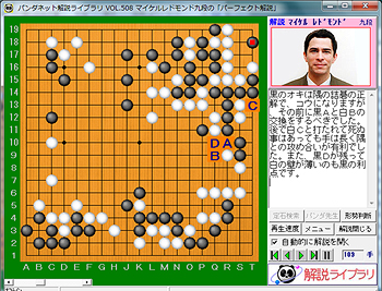 黒のオキは隅の詰碁の正解で、コウになりますが、その前に黒Aと白Bの交換をするべきでした。後で白Cと打たれて死ぬ事はあっても手は長く隅との攻め合いが有利でした。また、黒Dが残って白の壁が薄いのも黒の利点です。