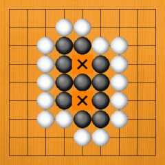 | Go is a game in which the players compete in surrounding territory, but you can remove enemy stones from the board if you surround them vertically and horizontally. Also, if you steal away the living space of a group, it will die, so you can remove it from the board at the end of the game. Capturing enemy stones and killing enemy groups is one of the fascinating parts of Go. People who have just learned to play may become fascinated by this element of the game. |