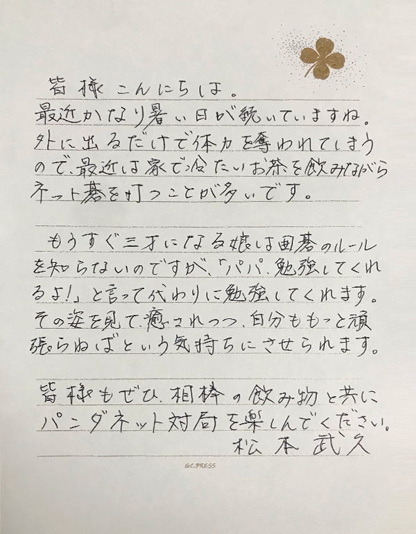 松本武久八段から近況の写真とお手紙を頂きました!