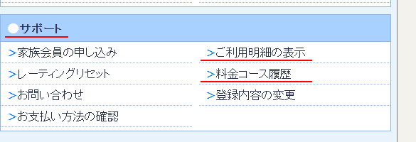 マイページの「ご利用明細の表示」「料金コース履歴」より、ご契約コースや年払い更新月の確認、ご料金の明細が確認頂けます。