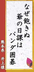 - ※ご応募いただいた川柳につきましては、入賞作品または入賞作品以外でも、後日のパンダネットメールマガジンや、ホームページ上、抽選プレゼントの特製カレンダー等、パンダネット運営内の催しにて使用(作品をご紹介)させていただく場合がございます。ご了承くださいます方のみご応募ください。