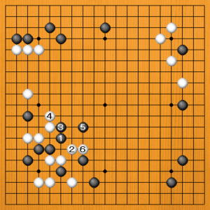 | 石が混み合って、サバキを求められる場面でした。相手の石への利きを見て、上手に整形するのが肝心です。 |