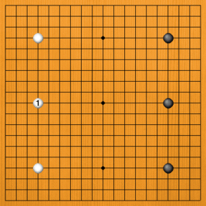 序盤のこの段階では、正解が一つということはありませんが、白1(A)とカカるのはプロでも多い着手です。この手の意味は、黒の三連星の広がりを制限するもので、そういう意識を持って打つのが、碁では大切なのです。