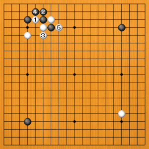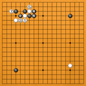 しかし、白1と黒4の交換がやや悪手になっています。もっといい手がありました。