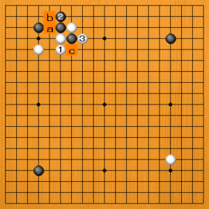 白1と単にノビて3とシチョウに取れれば、白aと黒bの交換がないだけ好形です。