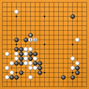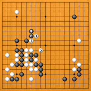 白3とツイで戻るのも、踏み込みが足りません。黒4と先にノビられると、黒の形が威張ってきます。競り合いでは、相手を先に行かせるのは禁物です。