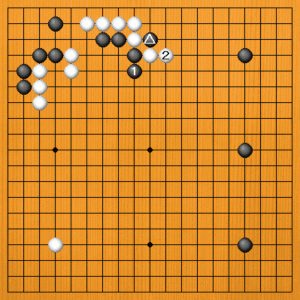 黒1とこっちをノビれば、白2とノビられて、黒△の一子が取られます。黒1とノビた石も浮いてしまって、攻撃の対象になるでしょう。