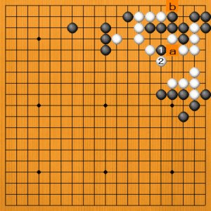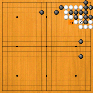 黒1(A)のアテは、aの断点を作ってから黒3と戻る意味で、一仕事していると言えなくもないのですが、これでは不十分なのです。