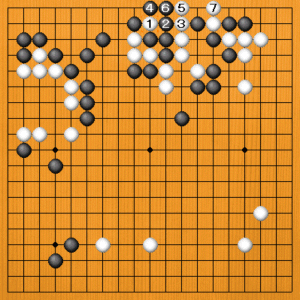 この場合は黒1のキリからいくと、黒のダメがつまってしまい失敗でした。
