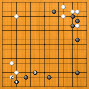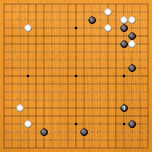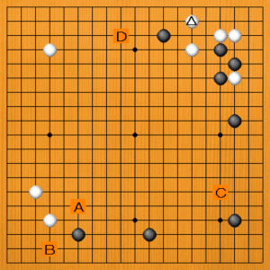 黒1(D)のヒラキは着実な手です。黒模様を広げるのには役立ちませんが、悪い手ではありません。