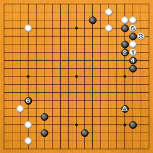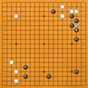 黒1(D)は60点くらいでしょう。白△の石に動き出されるのが嫌なのでしょうが、まだ気にするところではありません。
