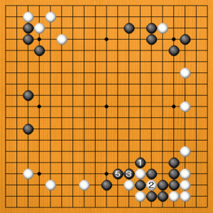 黒1に切りは、白2とノビられて困ります。黒3と切って大きなコウですが、このコウは、黒が負けたら悲惨な姿になります。とても仕掛けられるようなコウではないのです。